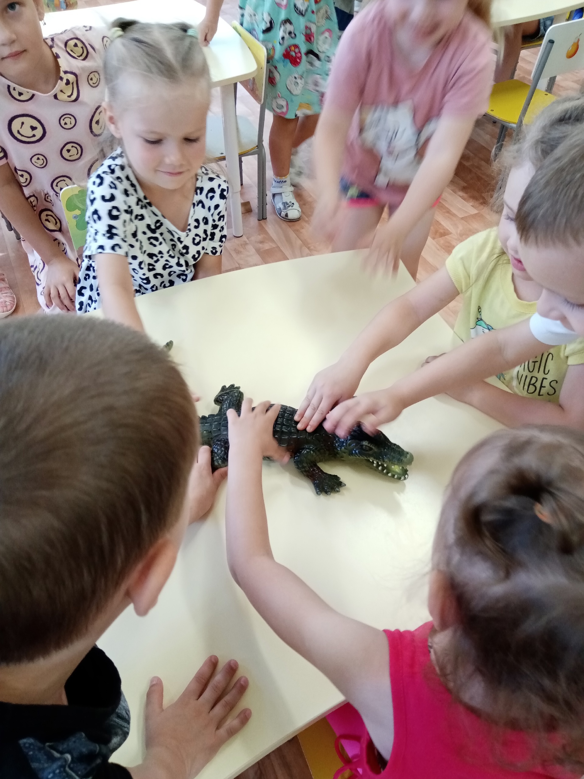 В группах "Мультяшки" и "Сказка" прошёл тематический день, посвящённый крокодилам - дети рассматривали книги, иллюстрации, рисовали, лепили и познавали новое об этом животном. Была проведена беседа "Кто такой крокодил?". Ребята отгадали загадки, послушали сказку К.Чуковского "Краденое солнце".