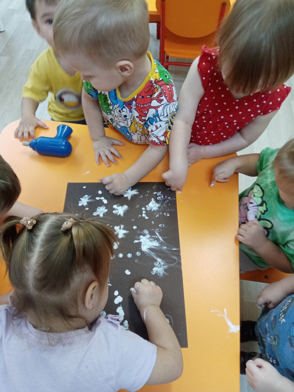 А потом дети рисовали ёлочку, красочные, новогодние шарики.