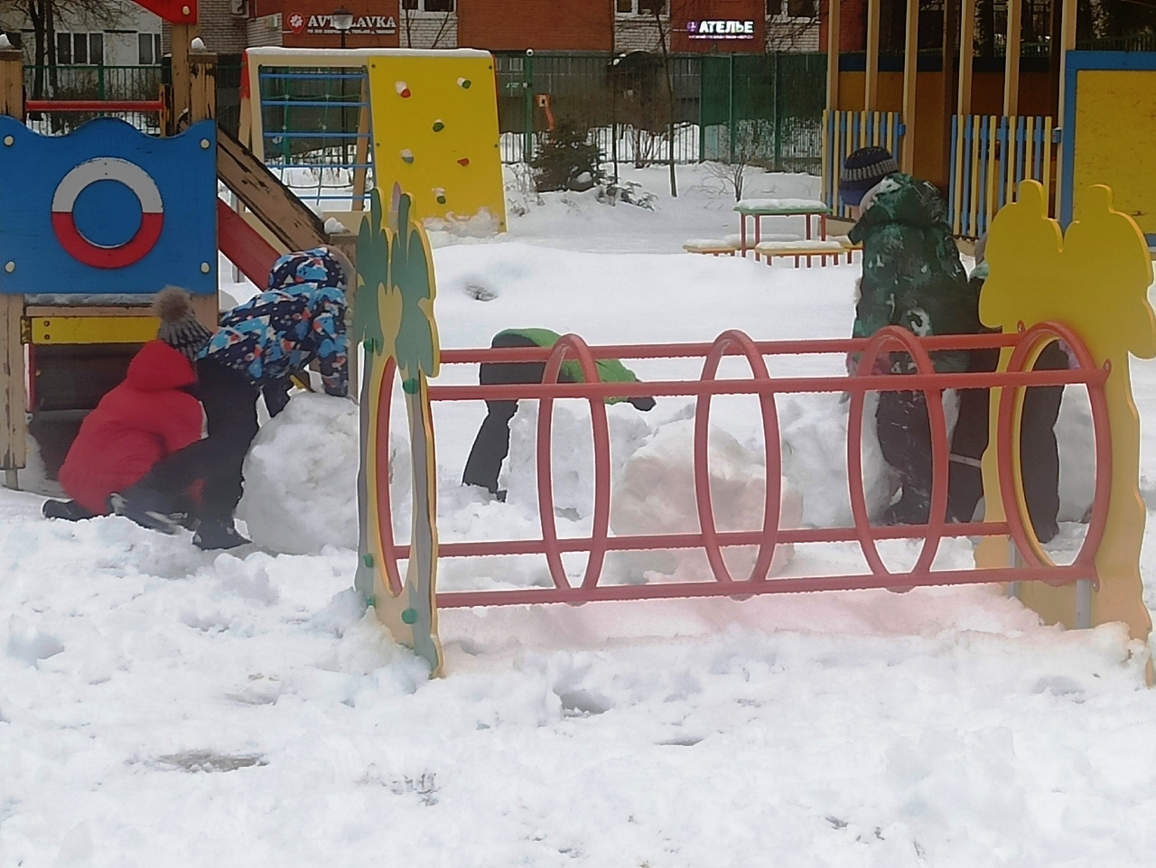 Дети из группы "Смешарики" не успели доделать снеговиков