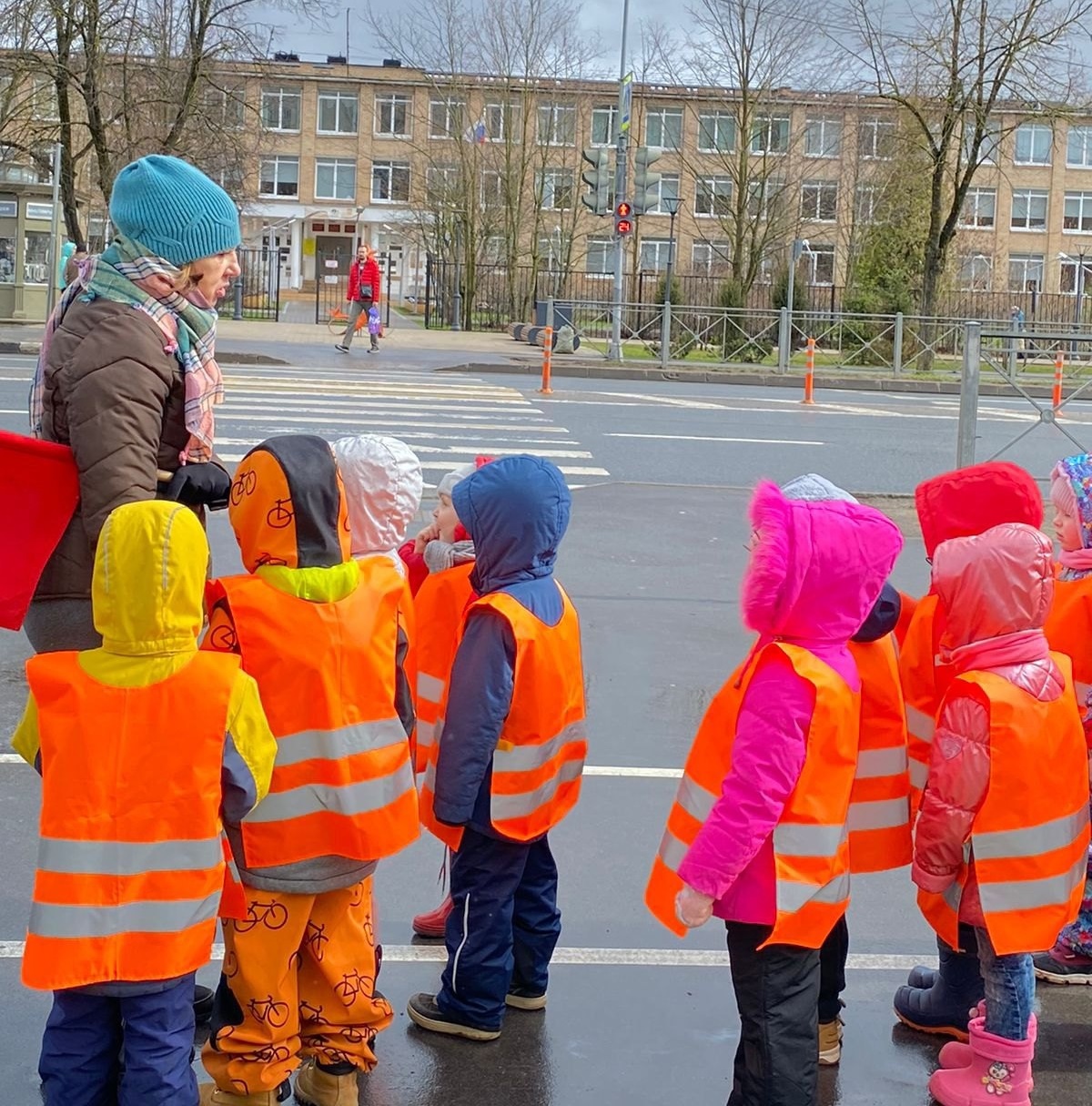 средних групп "Теремок" и "Пчелки"первый раз отправились на экскурсию к пешеходному переходу.