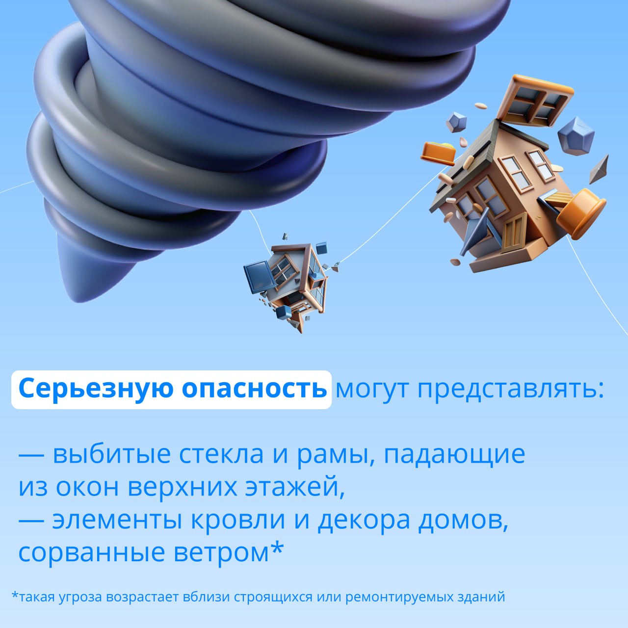 Напоминаем правила безопасности при штормовом ветре — в наших карточках.