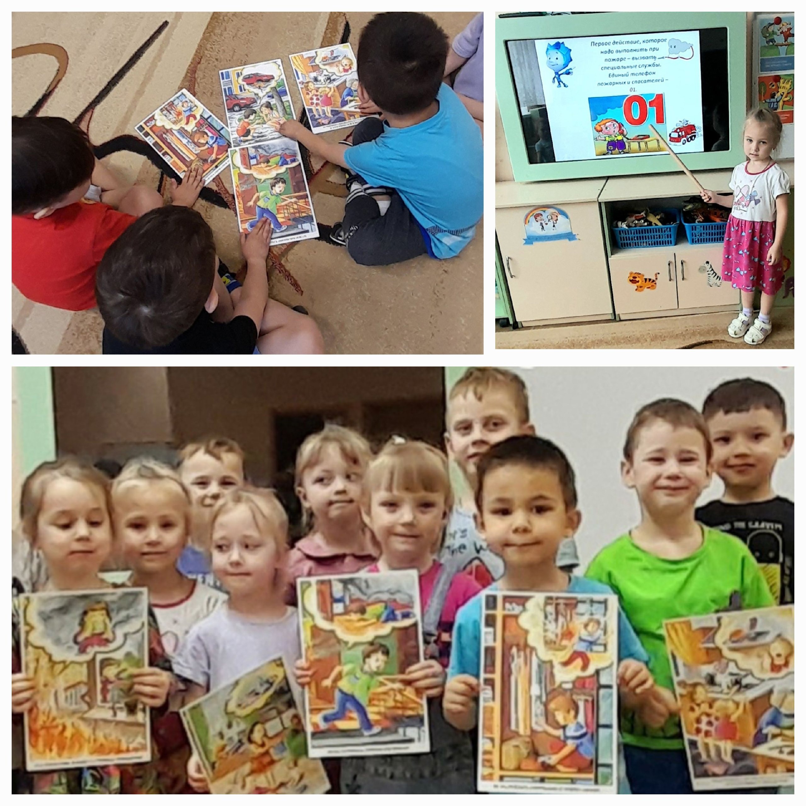 посмотрели презентации, мультфильмы и обучающие видеоролики, из которых они узнали, что делать, если загорелся